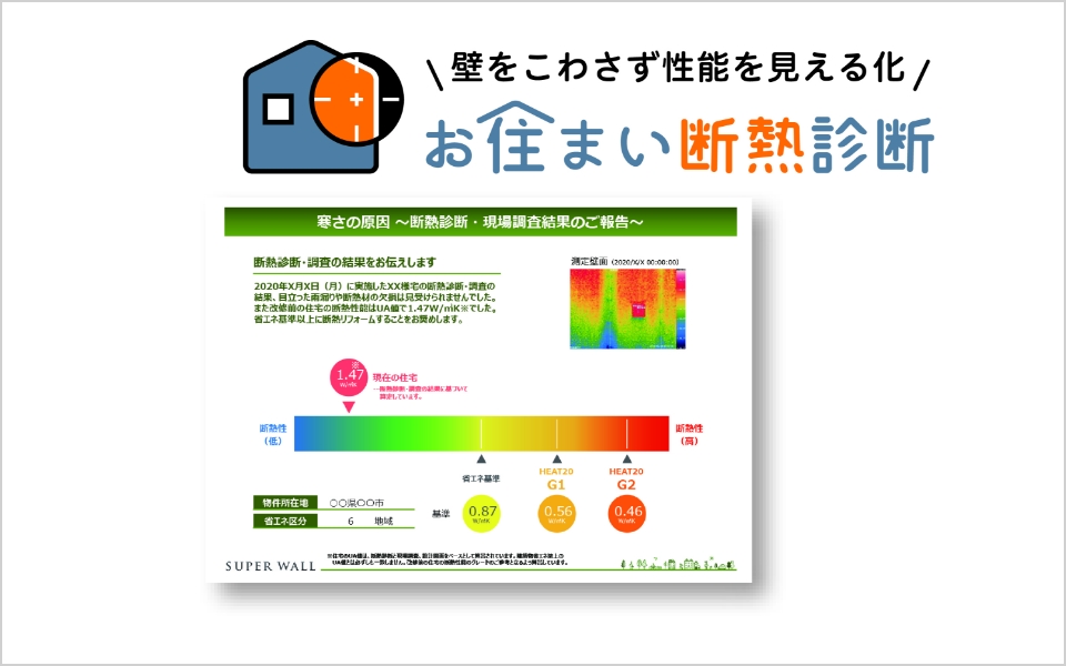 SW工法リフォームでは、専門家によって、現在のお住まいの断熱性能を測定・診断し、最適な断熱改修仕様をお施主様にわかりやすくご提案します。