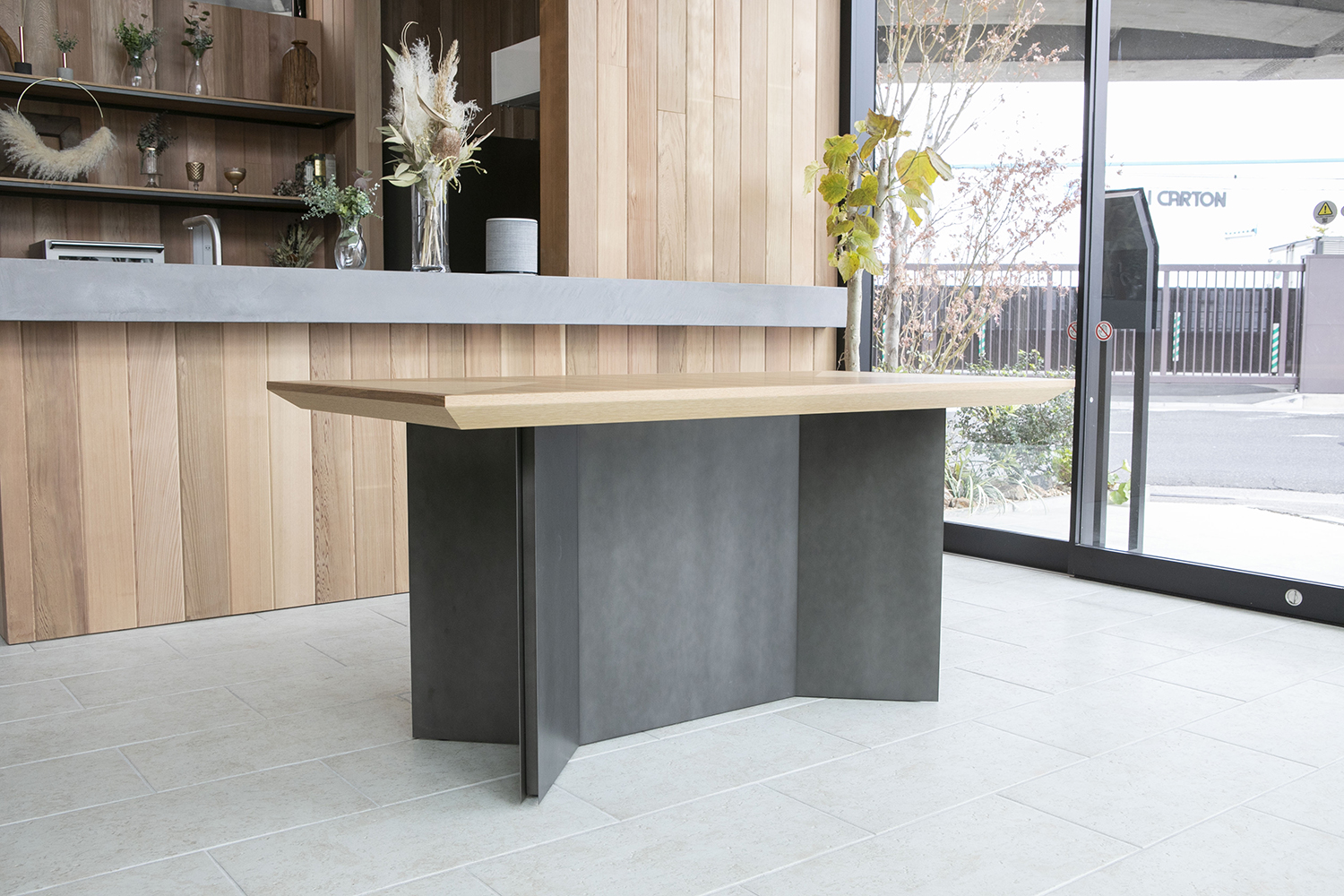 ⬆︎テーブル。天板は厚突きのオーク突板。