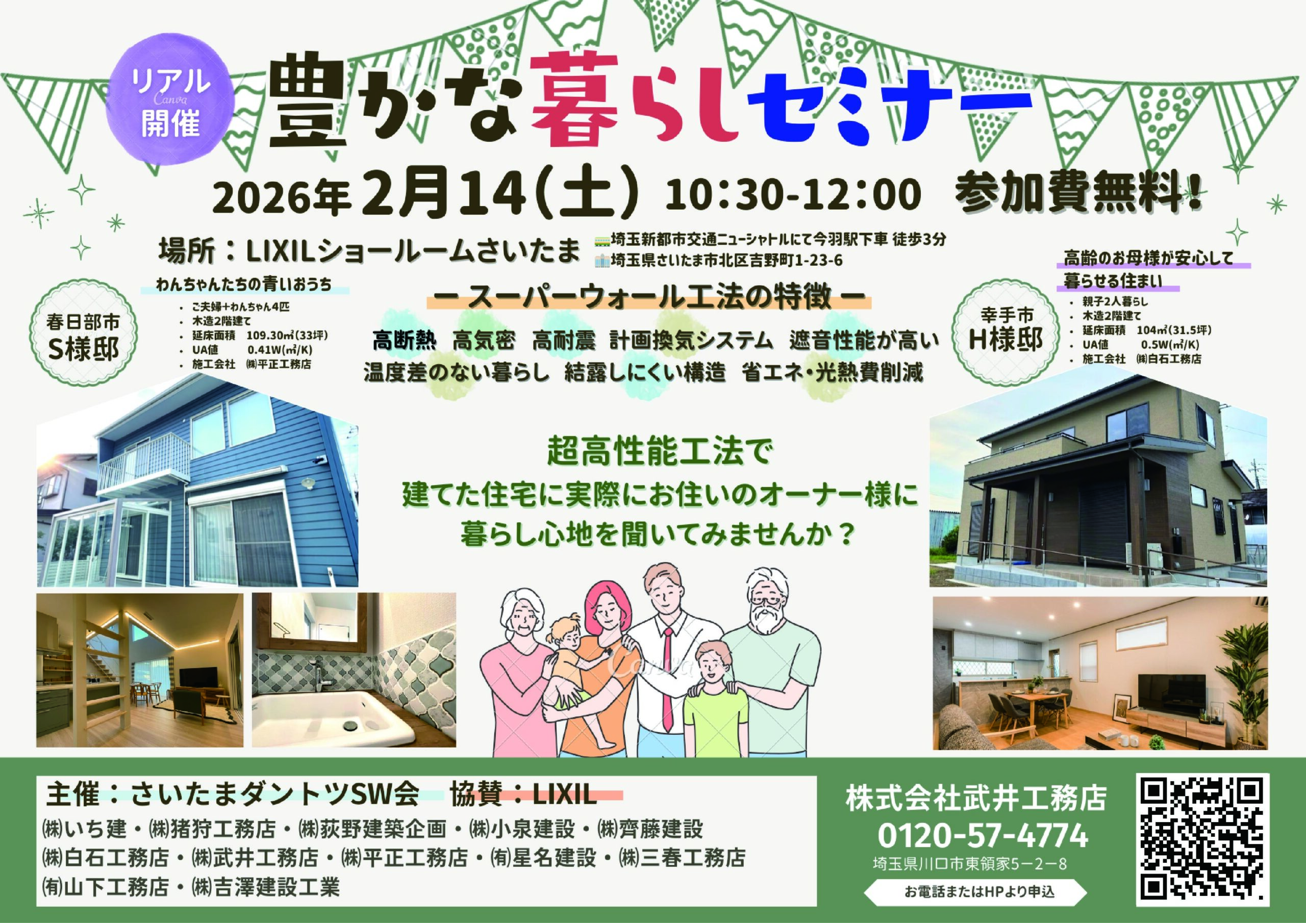 川口市近郊で、夏涼しく冬暖かい省エネ住宅をご検討中の方は、ぜひお気軽にご参加ください!