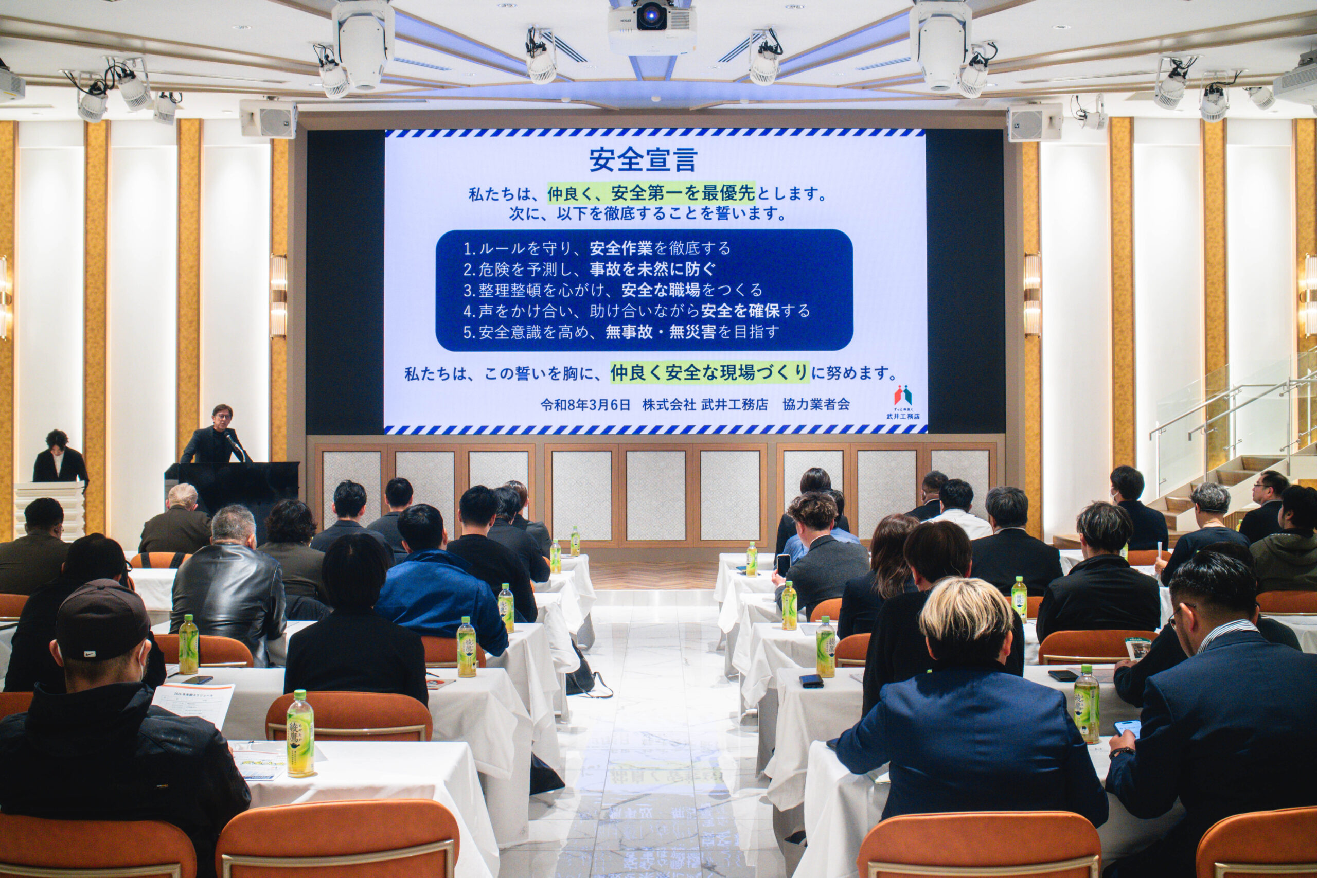 2026年3月6日に、武井工務店 第二回安全大会・協力業者会を開催しましたので、その様子をご報告いたします。