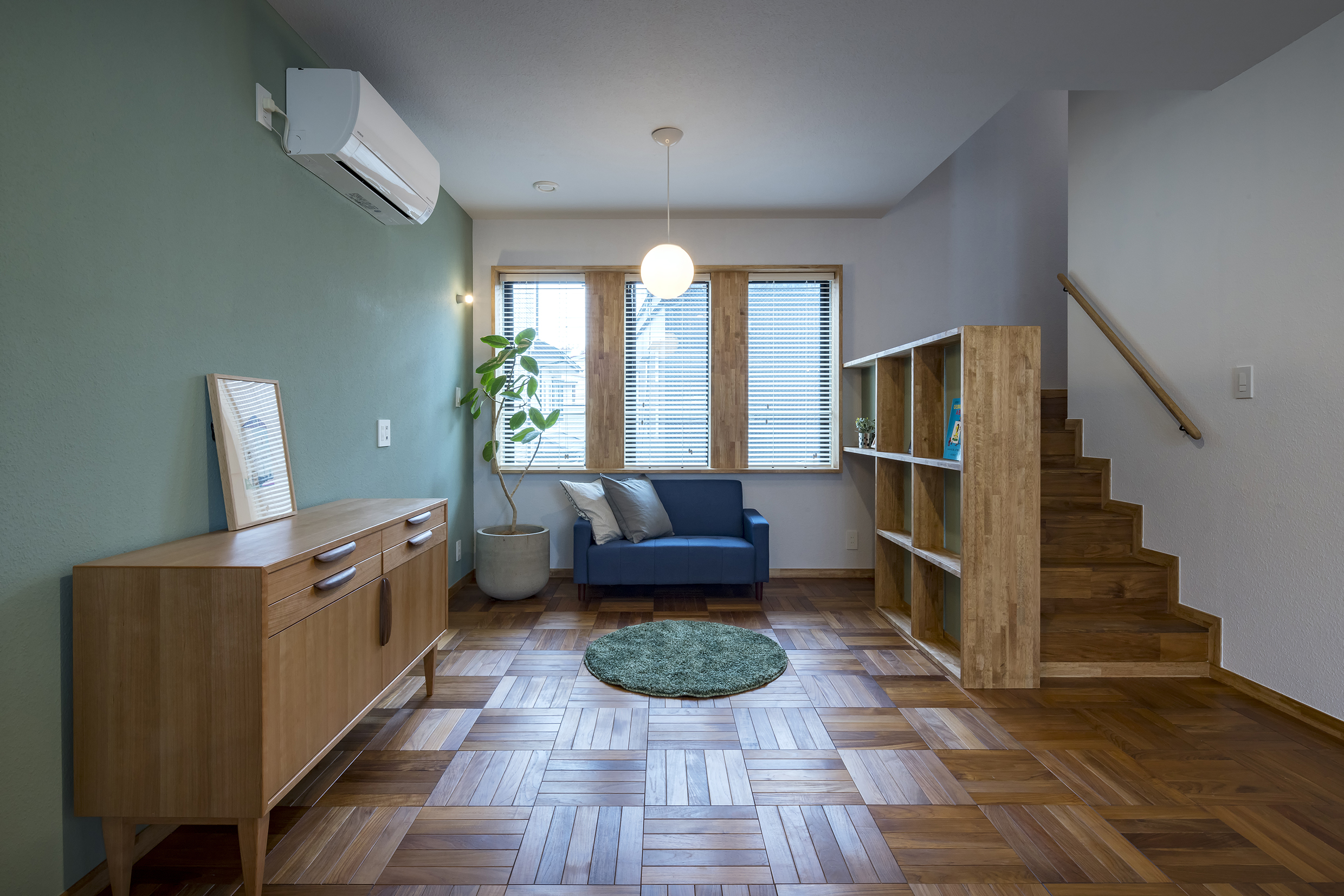 事務所供用住宅。白いガルバリウムのシンプルなボックス型の外観にエクステリアは有機的スリットの土間スタイルです。 内観は全体的に北欧スタイルでシンプルさの中に素材やディテールにこだわったデザイン住宅です。